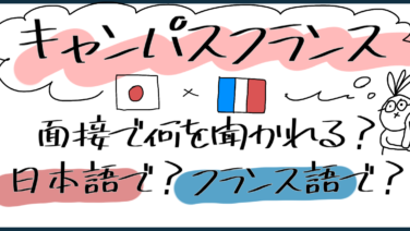 いよいよキャンパスフランスの面接。このサイトでは実際に面接を受けた筆者の経験と、具体的な質問内容を解説しています。また、面接は日本語なのか、はたまたフランス語なのか。これだけは絶対言ってはいけないNGワードまで、詳しく解説していきます。
